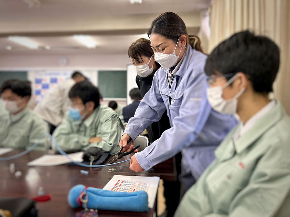 就職先は、自宅から程よい距離にある会社での事務職を希望していたところ、(株)高橋電気の求人を知り入社に至りました。入社後数年は事務として働いていましたが、ある時、社長から「電気工事士の資格を取ってみない?」と言葉をかけられたのきっかけに、第二種電気工事士の資格を取得しました。現場に出ることになったのは、シングルマザーになったのがきっかけです。