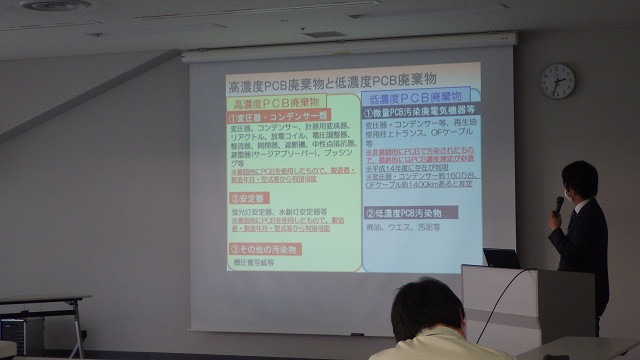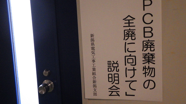 小さな町工場等で保管・使用していた場合に適正な処理がなされていない工場が多数あると思われ、またPCBの適正な処理を行うにあたり組合員が出入りしている事業所等への相談・説明が行われるよう、専門的な知識を養う説明会について検討を行ってまいりましたが、この度、PCB処分業者(㈱クリーンシステム、北辰通商㈱)より新潟支部での説明会が実施されました。