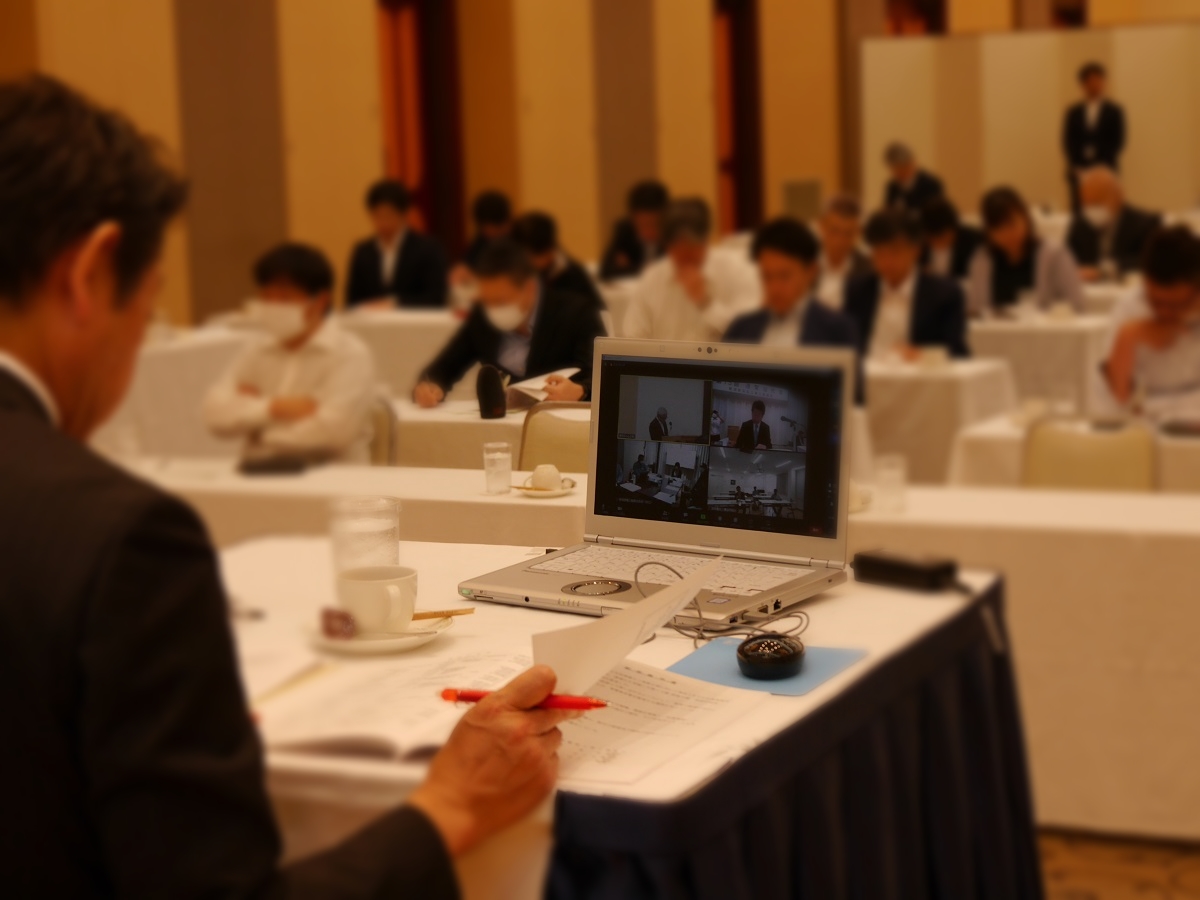 また、今回は昨年に続き、現地出席・委任出席のほかに、会場と支部をZOOMで繋ぐ「オンライン出席」を採用し、複数支部で利用がありました。