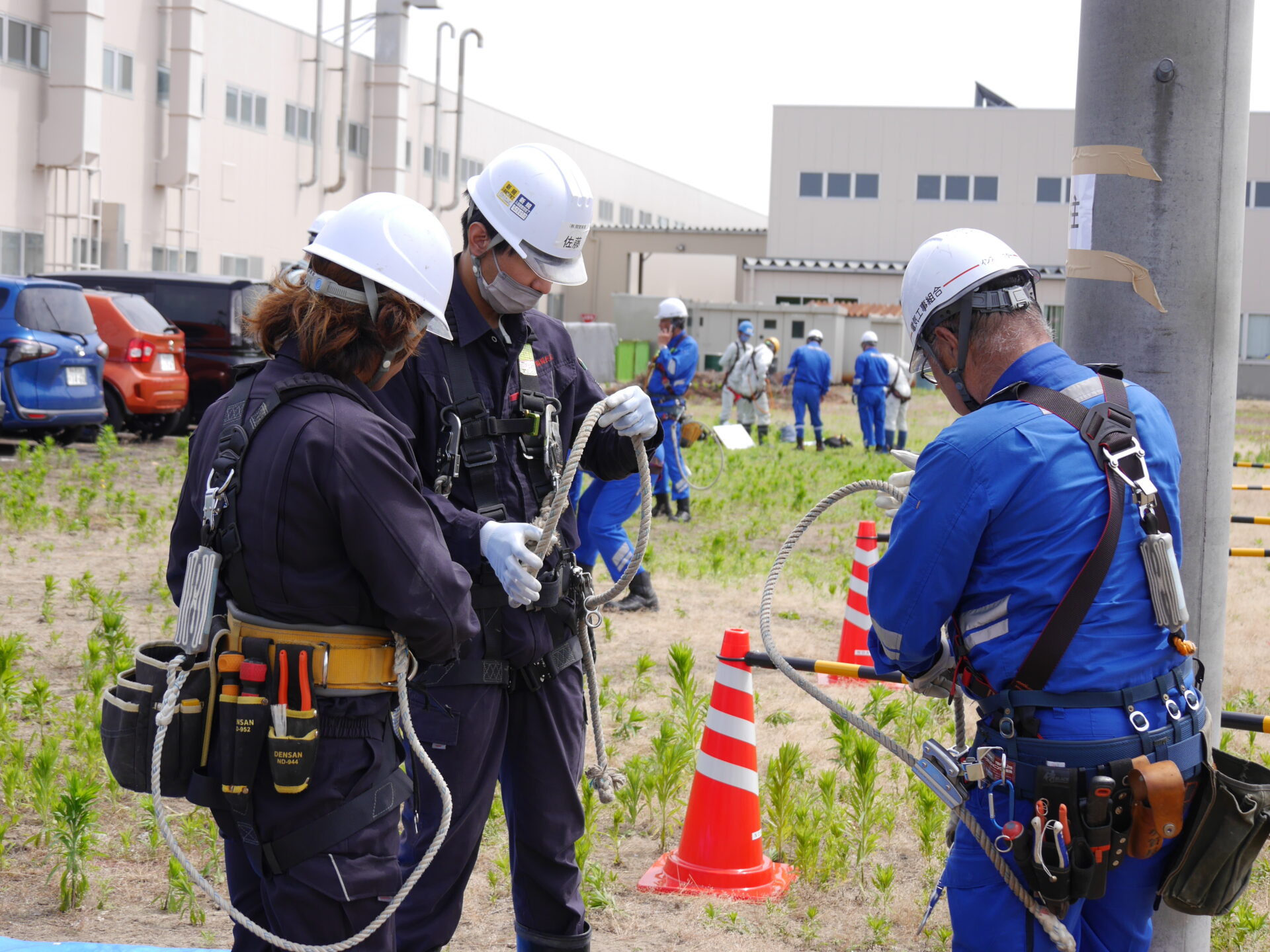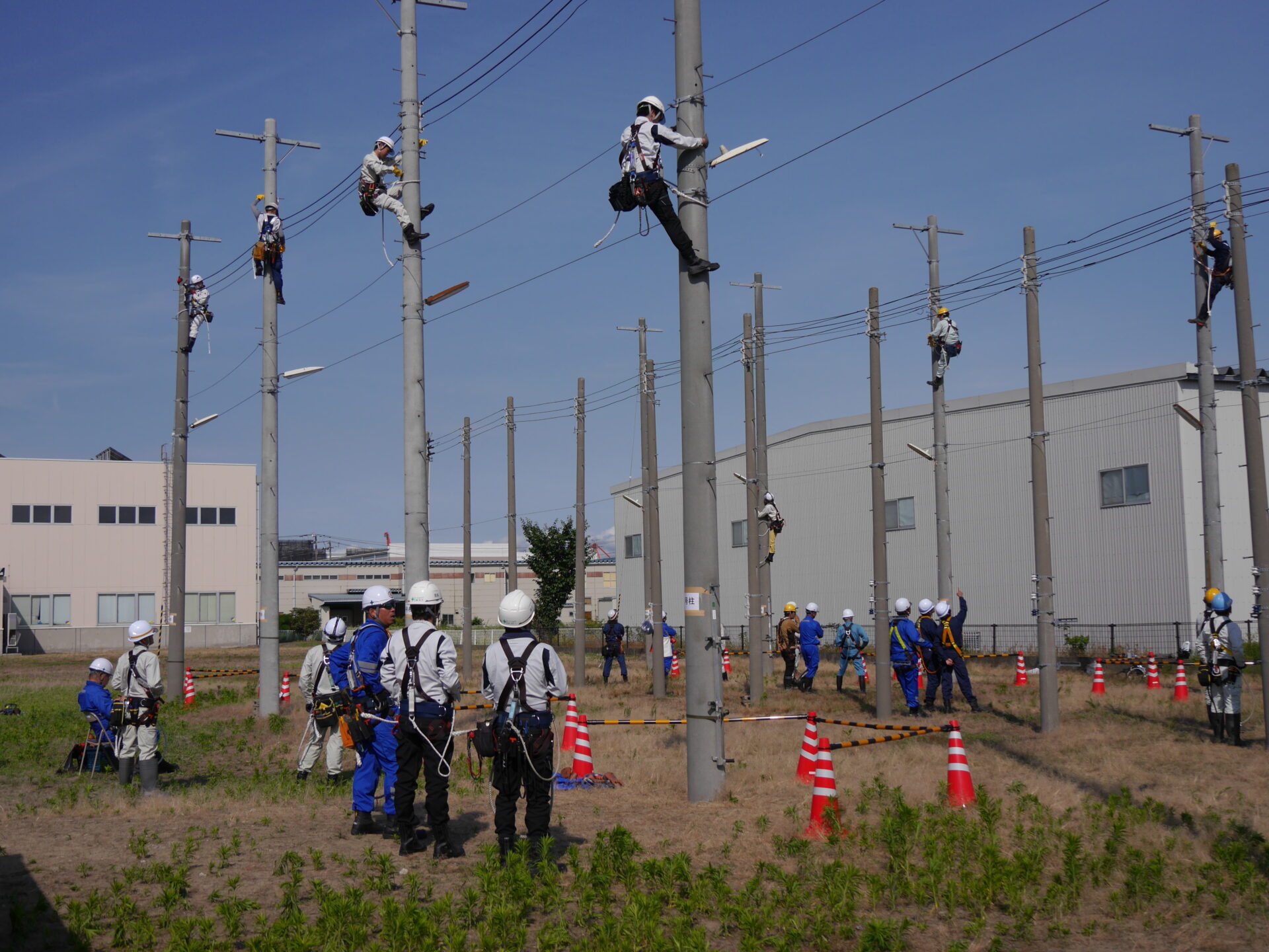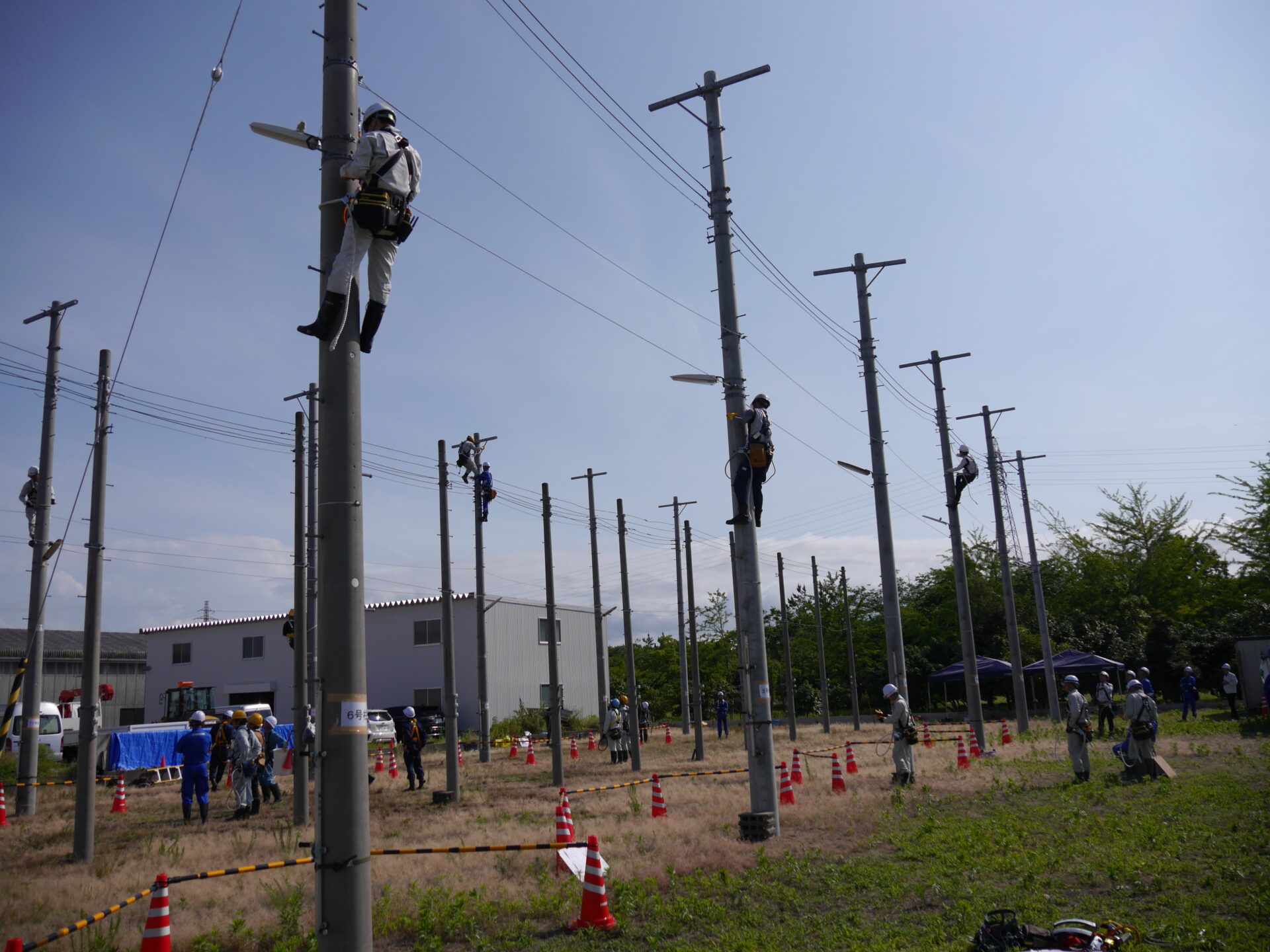 今週は、電柱に昇った上で作業を行う訓練が行われます。