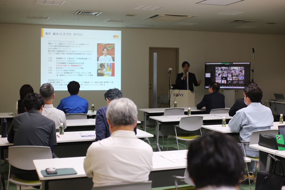 株式会社ワーク・ライフバランス 滝沢雄太様を講師にお迎えし、「生産性を高め、質の高い仕事をするための働き方改革」と題しご講演いただいたのですが、90分ほどのセミナーがあっという間と感じるほど充実した内容でした。