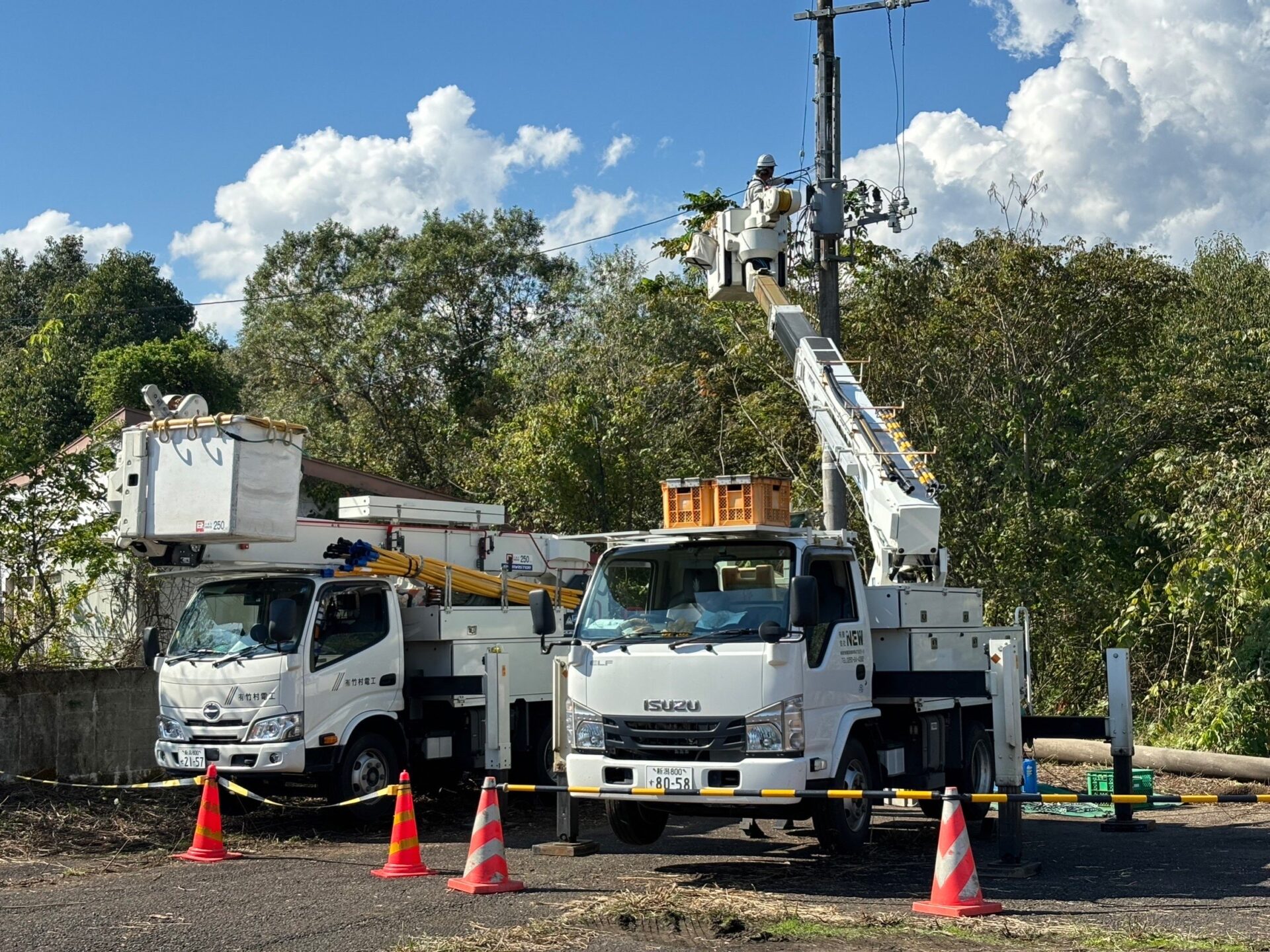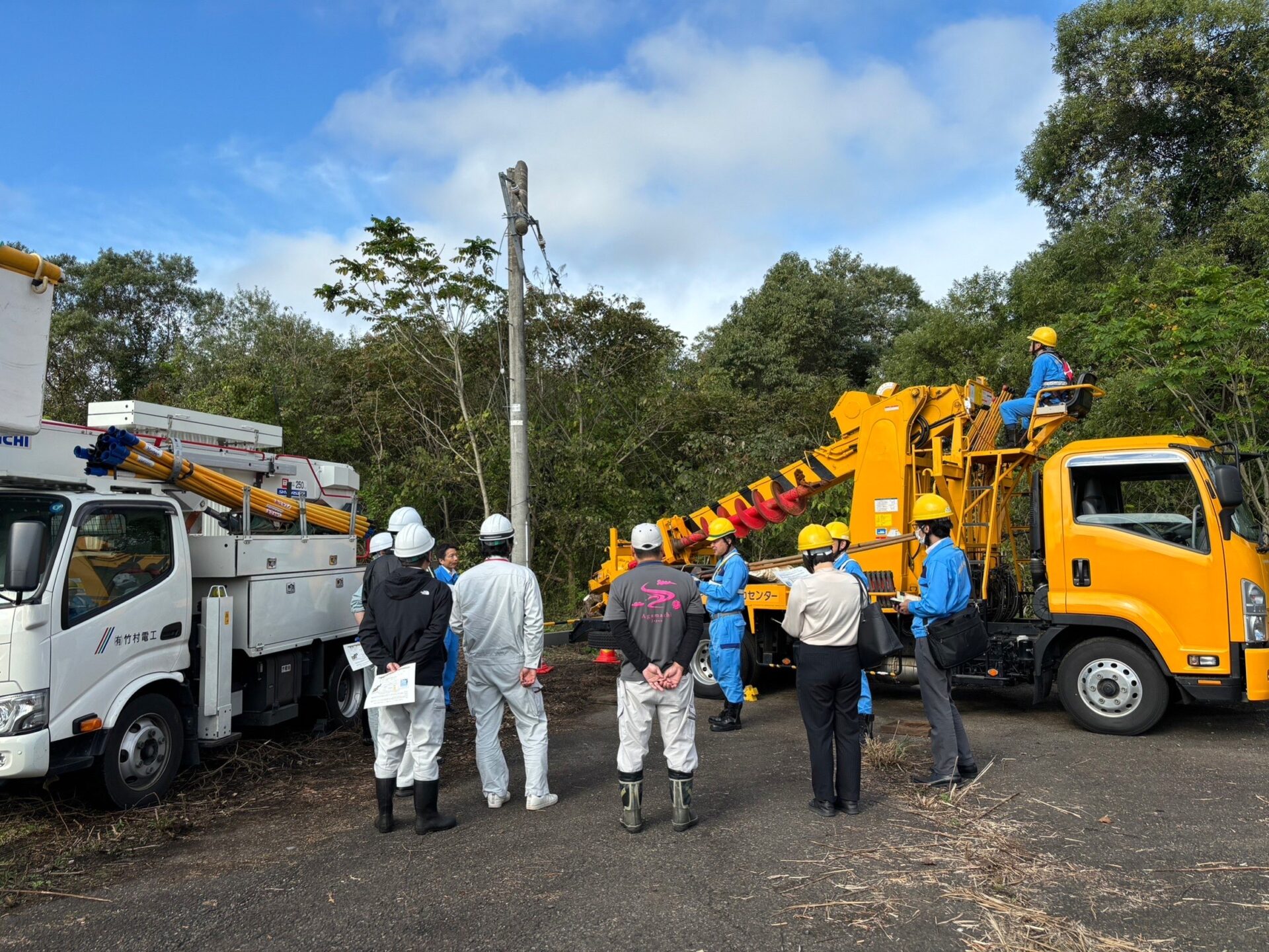 折れた電柱や切れた電線を仮復旧し通電させるまでの手順を確認しました。
