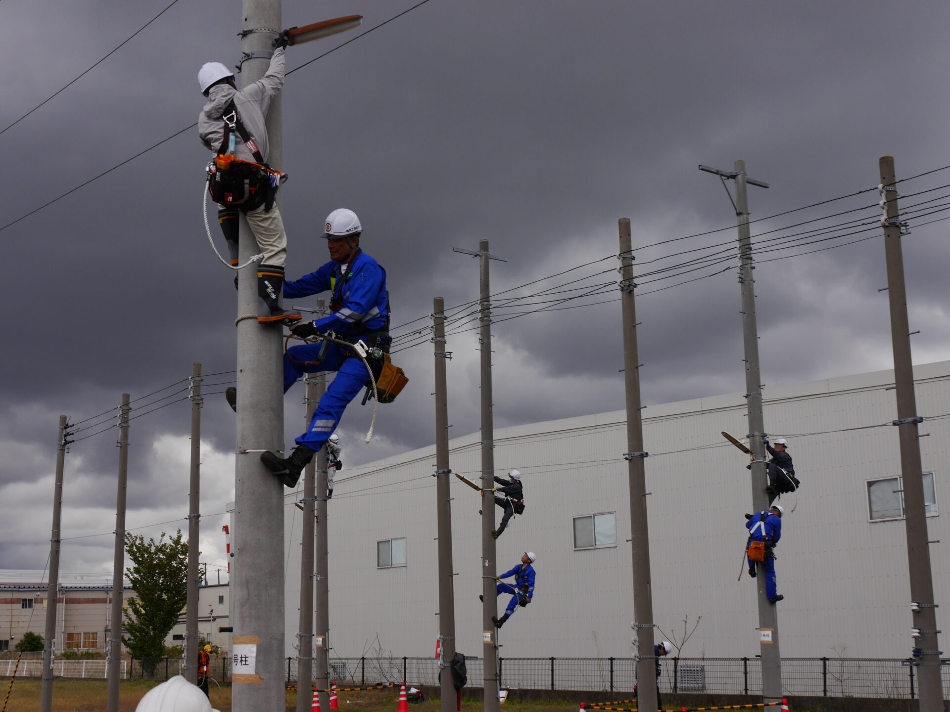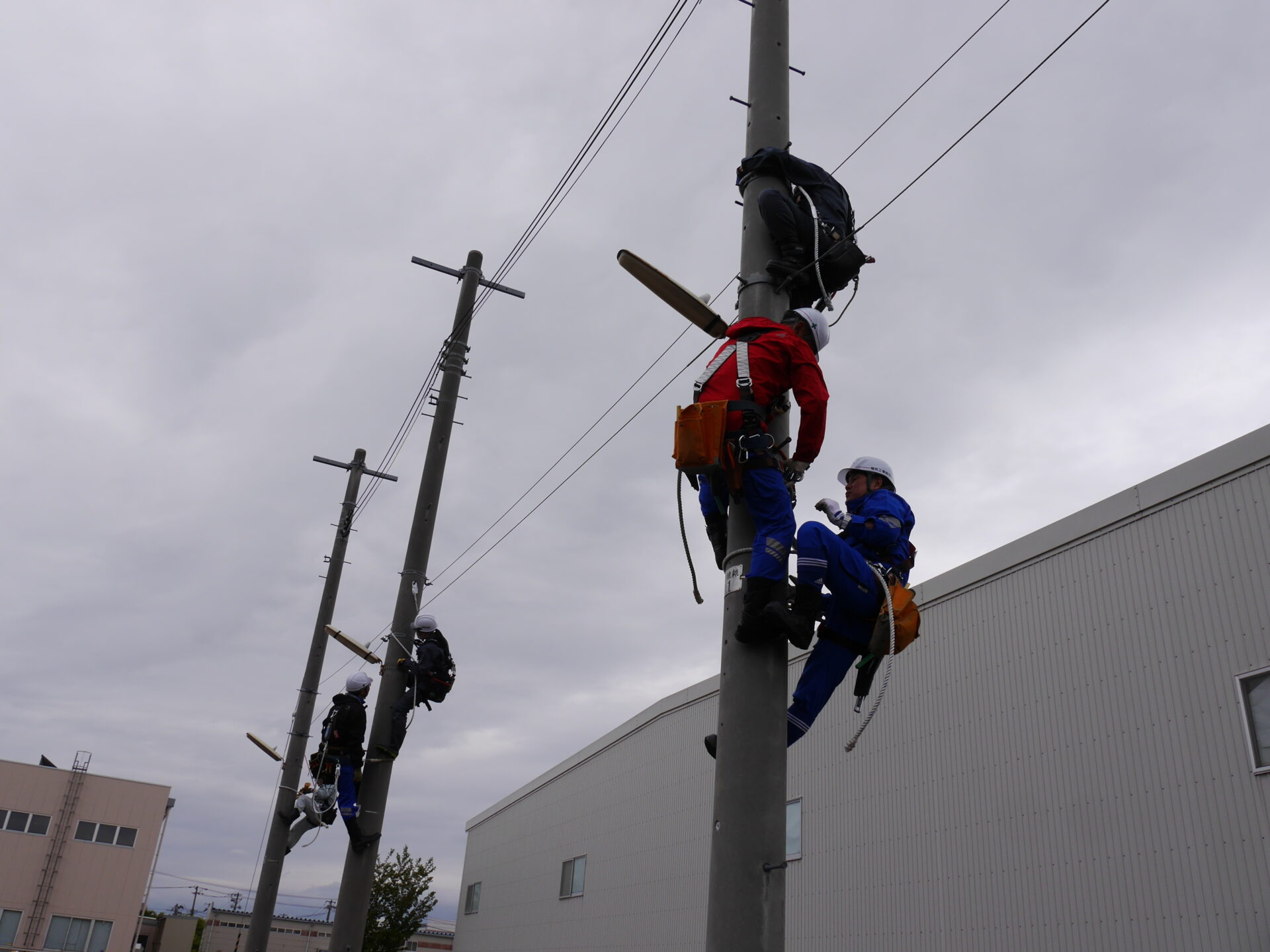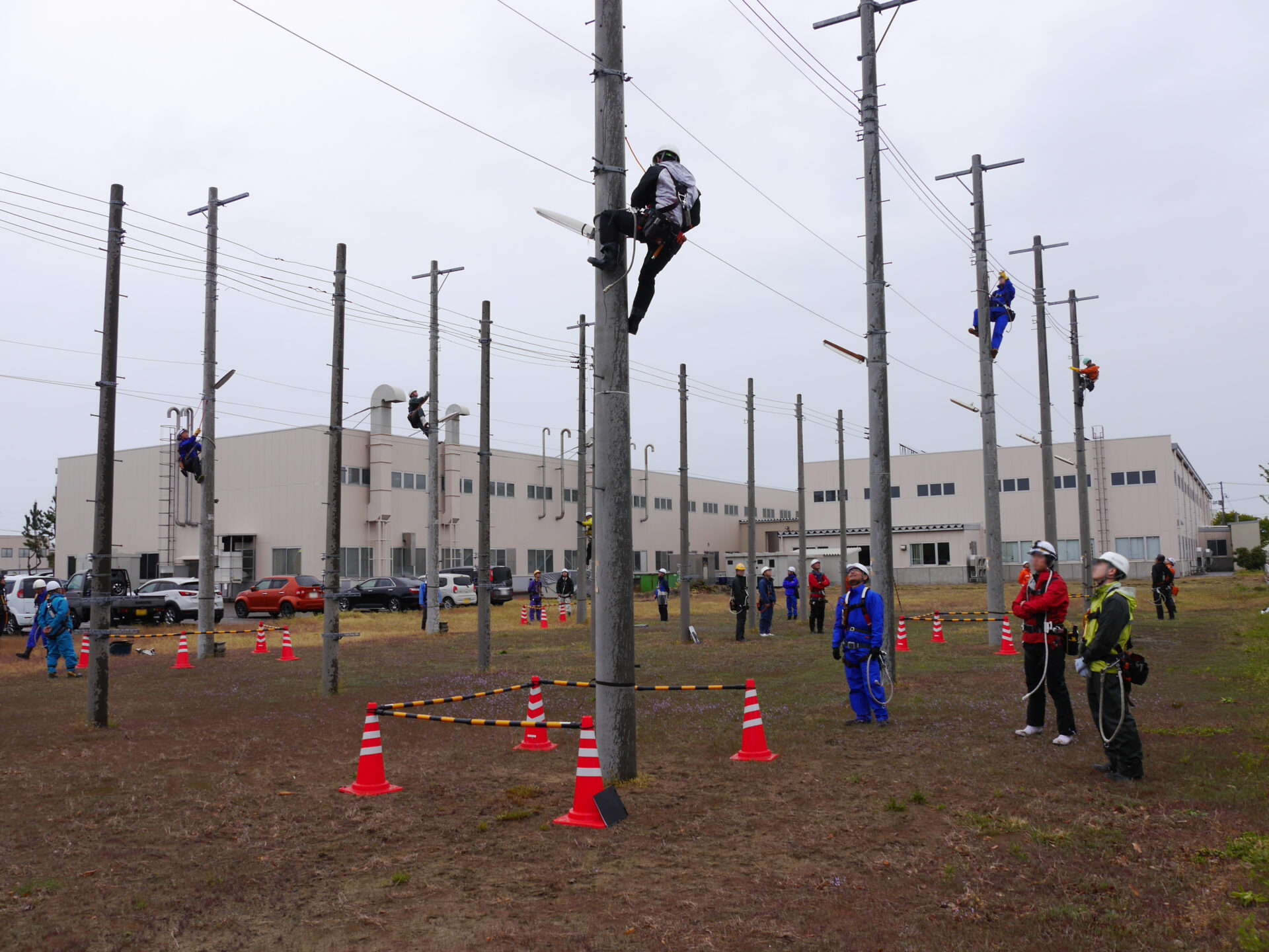 7月には、電柱に昇った上で作業を行う【基礎訓練】が行われます。