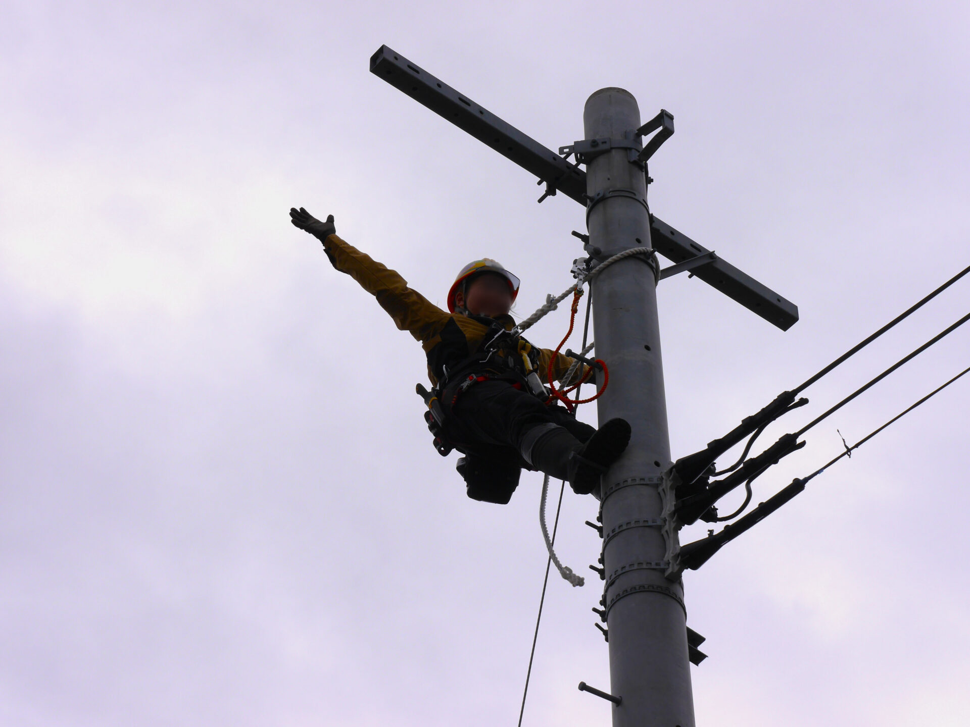 昇柱訓練とは、電柱に安全に昇れるようにする為の訓練のことです。
