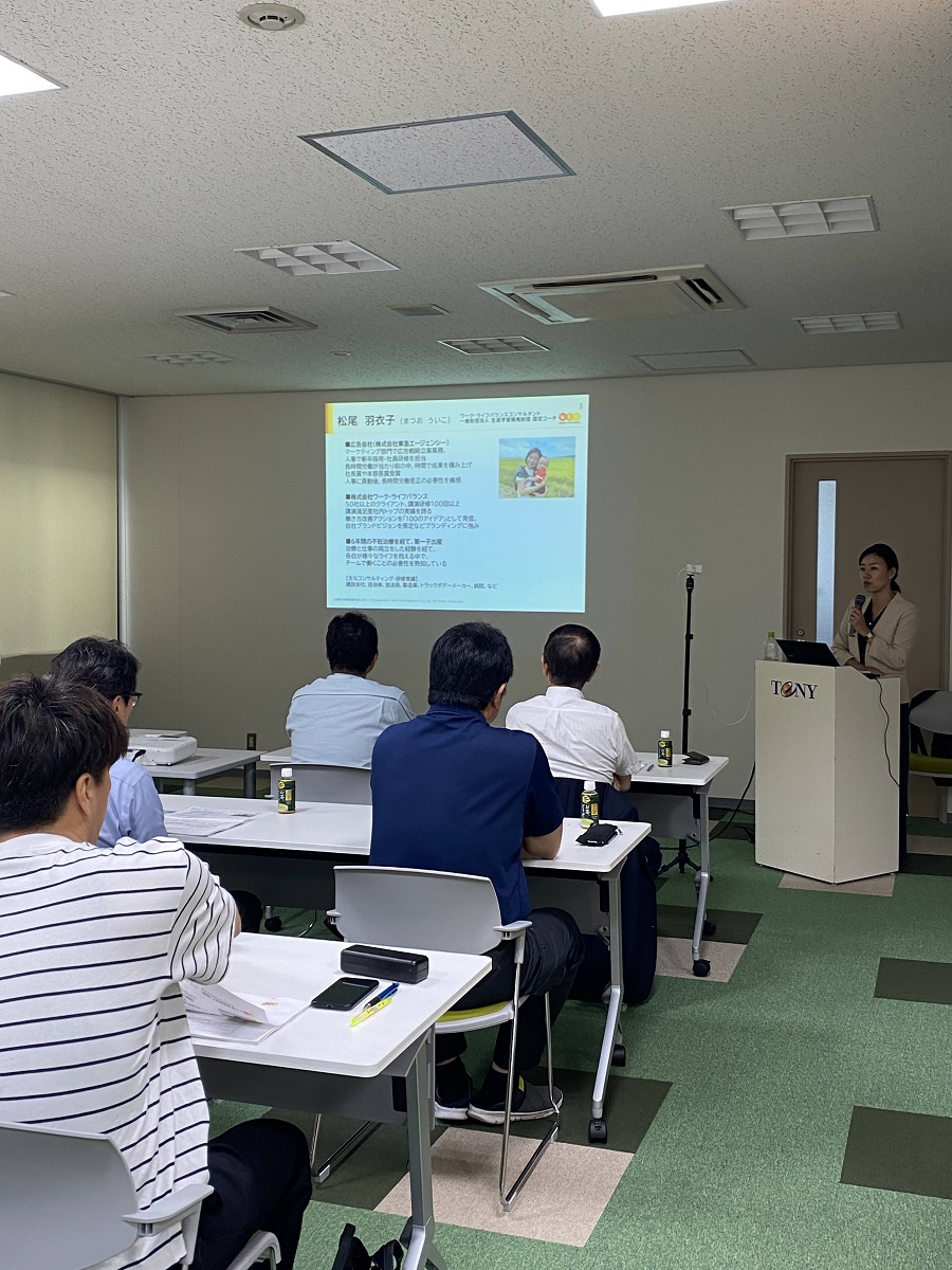 講師には、株式会社ワーク・ライフバランス 松尾羽衣子様をお迎えし、「経営戦略としての働き方改革~2024年問題で変わる職場環境~」と題し、働き方改革の必要性や管理職が理解し実践すべきことをワークを交えご講演いただきました。