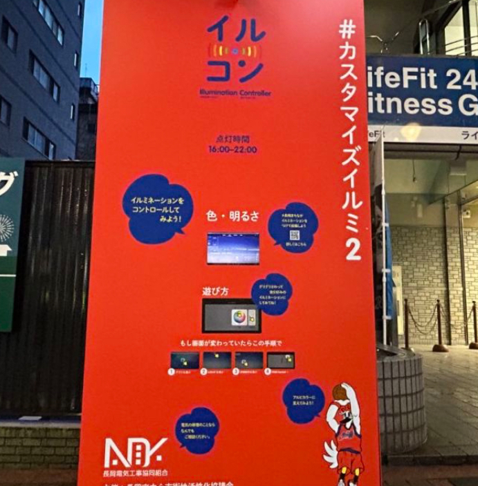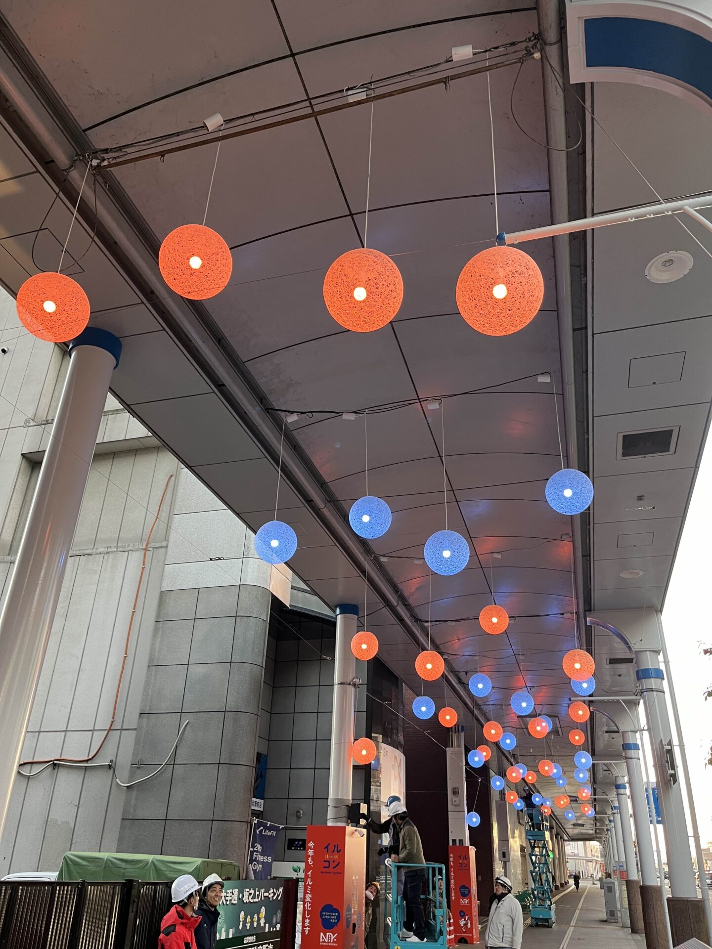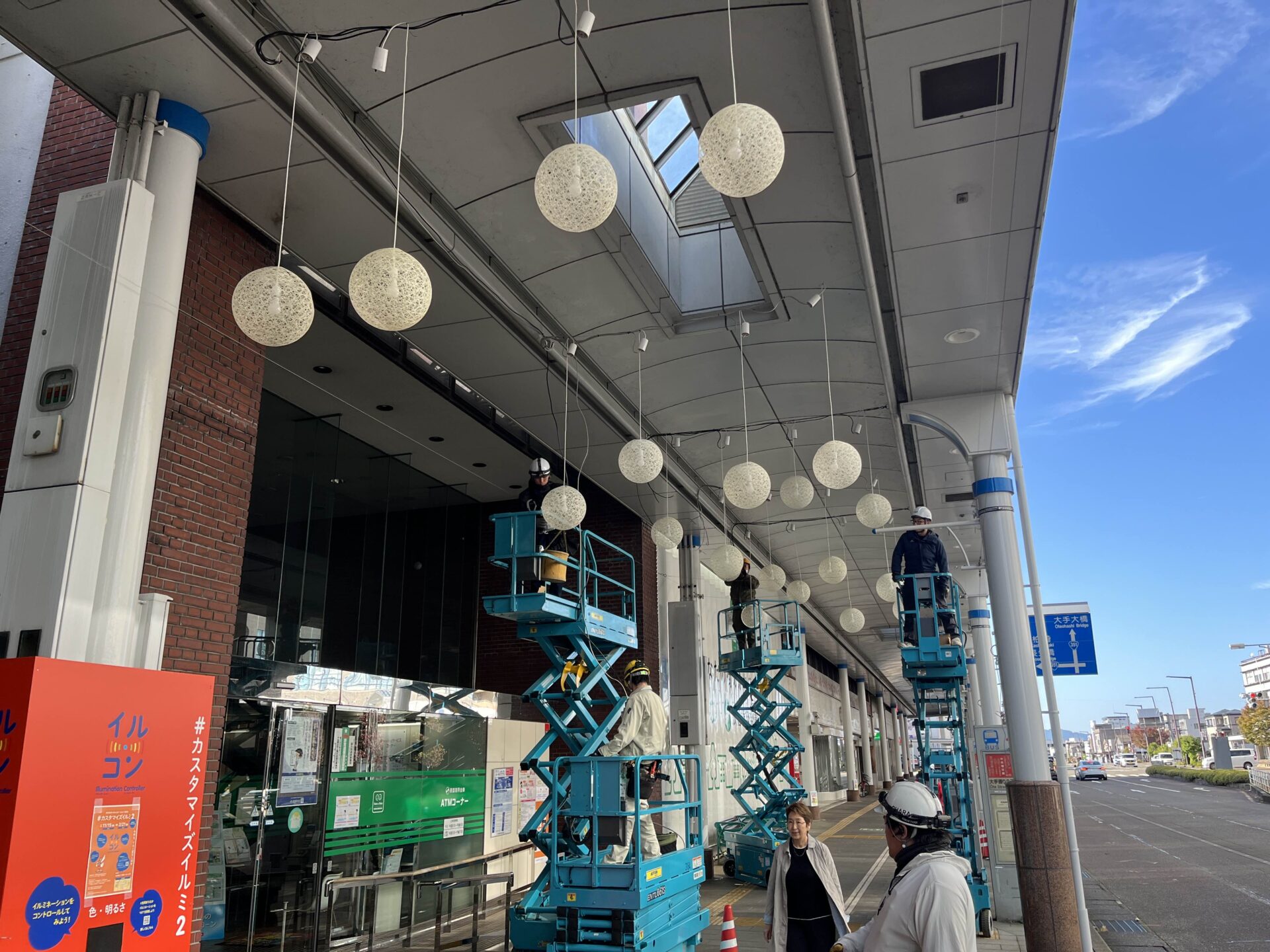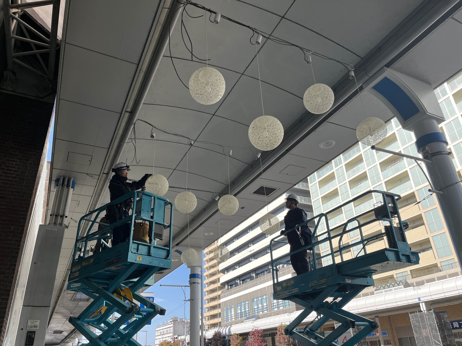 長岡支部青年部では、中心市街地活性化に向けた事業の一つとして、地元長岡造形大学様のデザイン監修のもと、駅前通りにて毎年イルミネーションを取り付けています。
