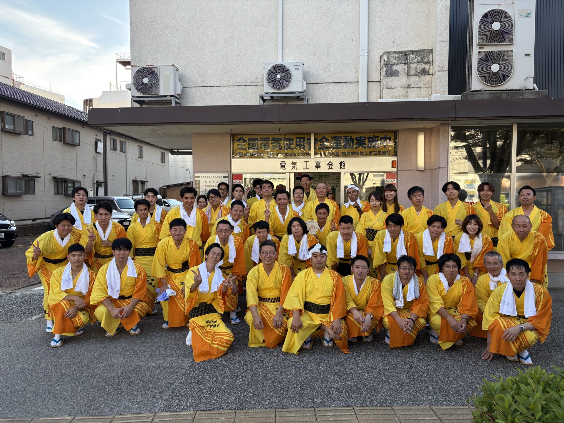 3年前に新調した電気屋らしい?色彩の浴衣にみんなで袖を通すと一体感が増します。