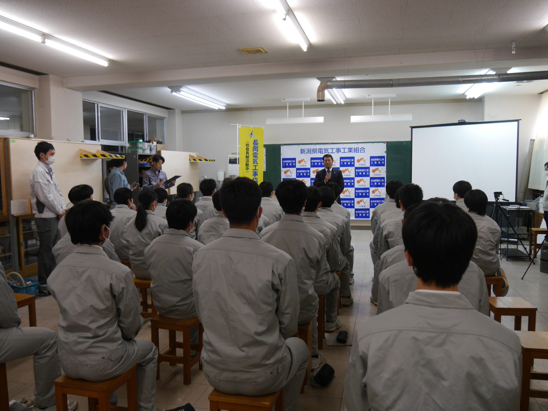 この事業は学校に組合員が出向き、電気工事業界の魅力ややりがいを知ってもらい、